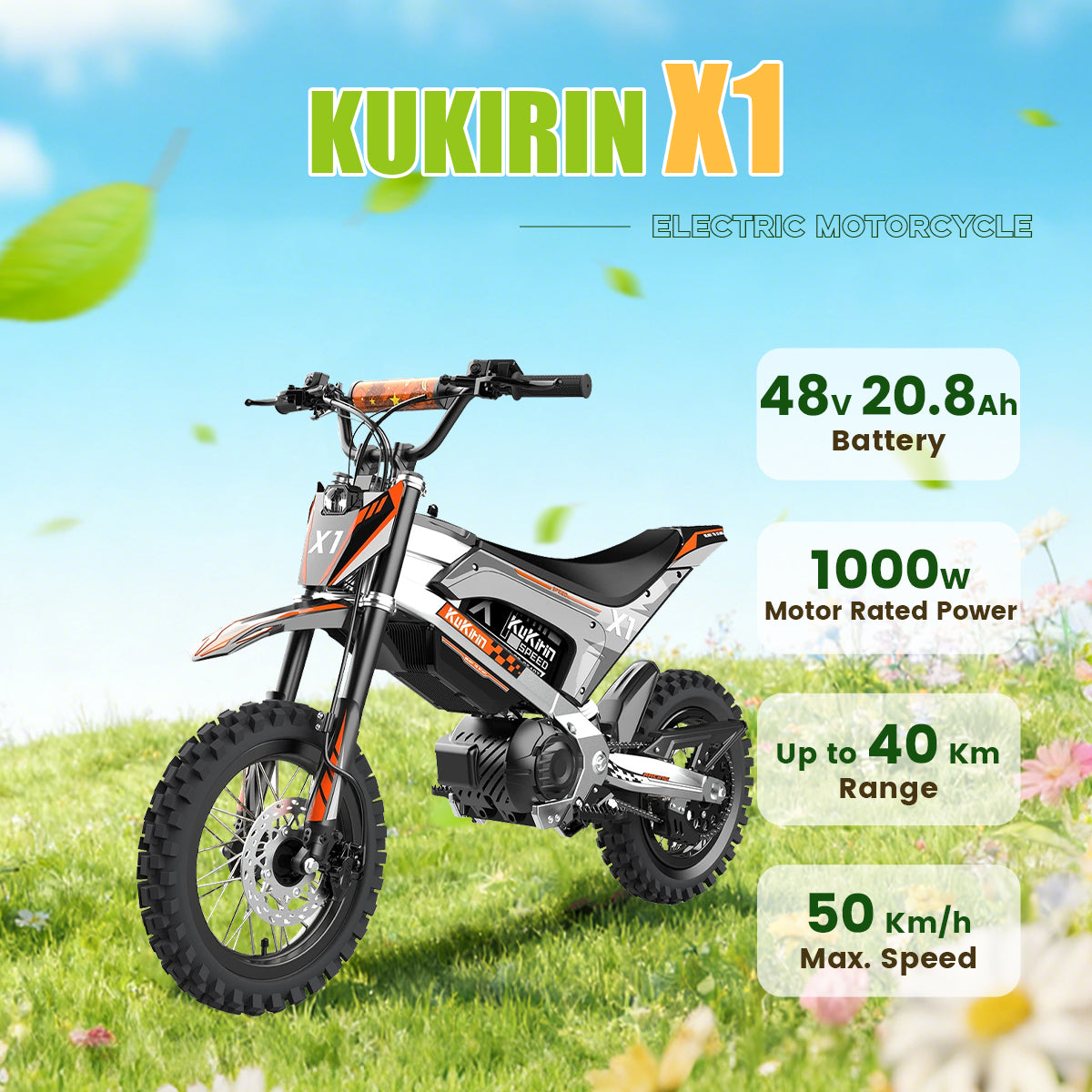 KuKirin X1 Electric Off-Road Motorcycle | 48V 20.8Ah Battery | 1000W Mid-Drive Motor